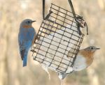 It would be such a treat to have the beautiful blue birds at my feeder regularly but they have expensive taste.  Mealy worms must be sold by the ounce plus all the other birds would 'share.'