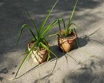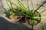 Your crinums are happy. They were repotted earlier in the season. They are in larger pots (12 in) and have delicious, nutritious dirt. It would seem they've gained in size though the bulb is buried and out of sight. They certainly have put out more leaves this year. The catch will be when the cold weather comes. They'll be parked in the cellar for a nap. The nap is October to mid May. Hope they don't mind this too much. They've survived it so far though. So.....What do you think? Are they any where near the size they need to be in order to bloom? When in their season do they bloom. Some plants bloom first and then leaf out. Some leaf out and then bloom. How do crinums do it?